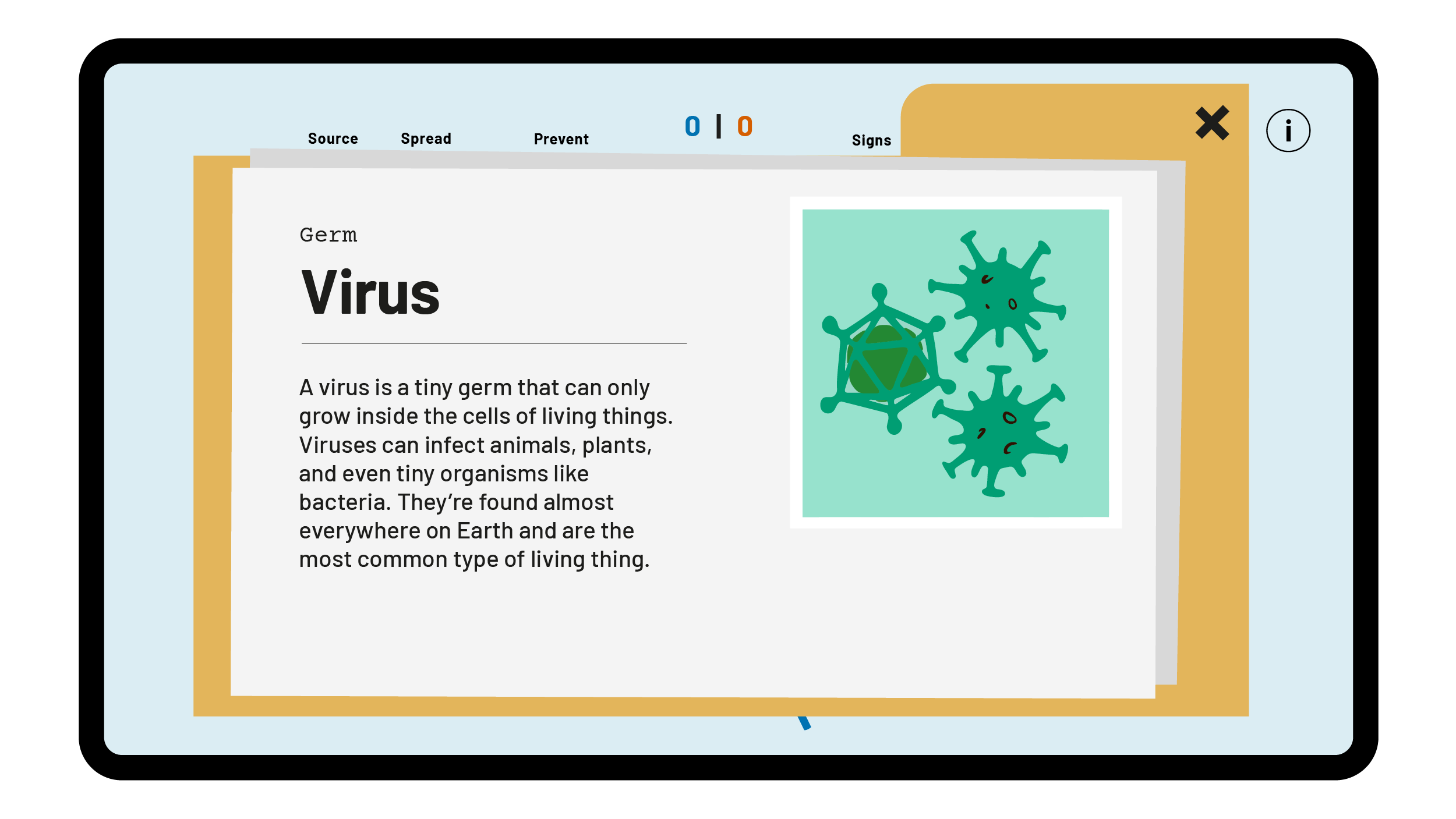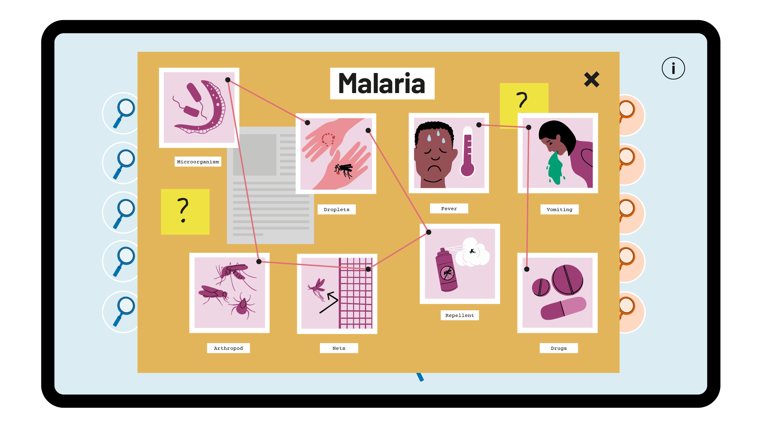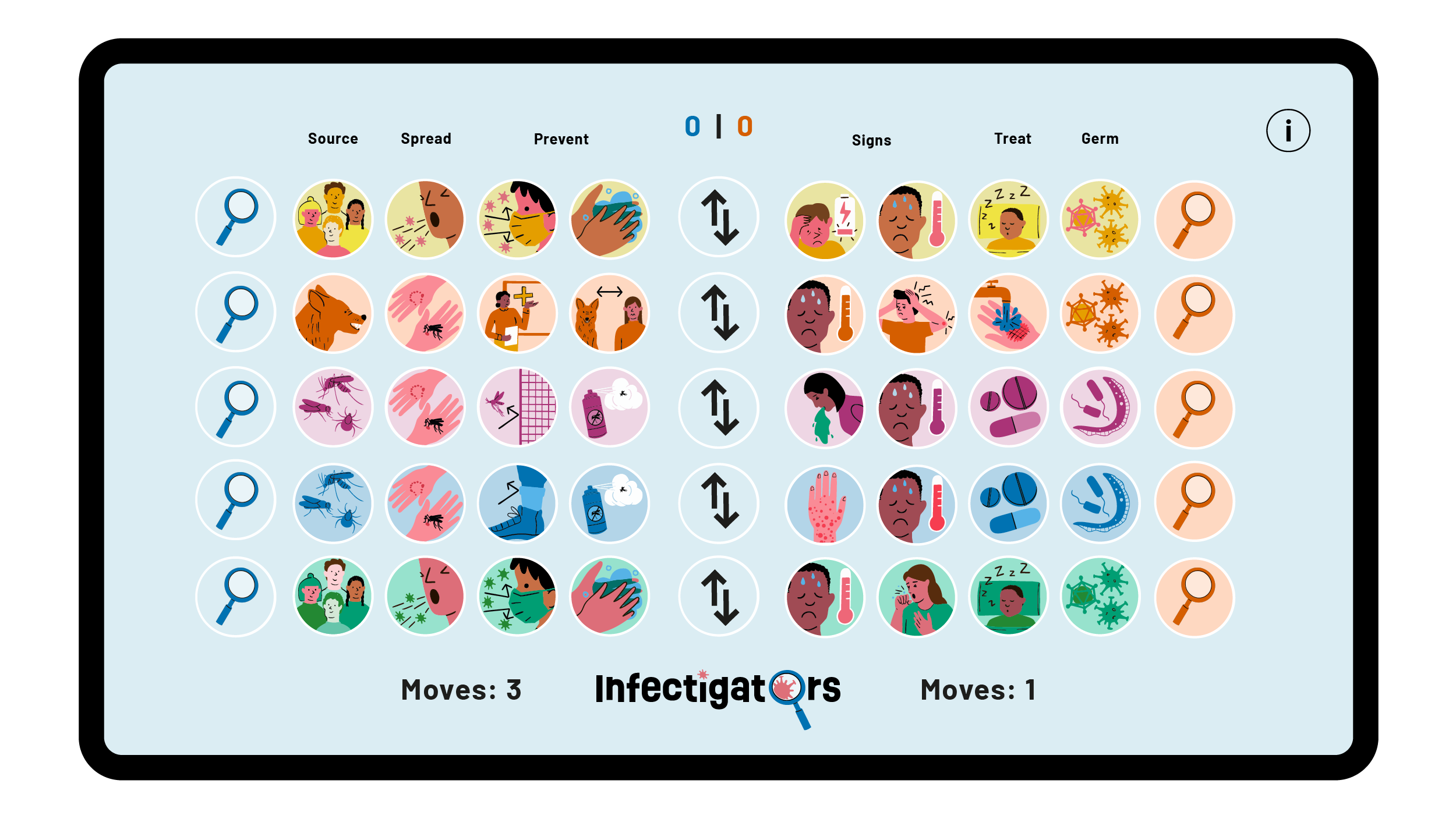 A simple premise pits players as ‘Infectigators’ as they search for clues revealing five different illnesses: Coronavirus, Influenza, Malaria, Rabies and Borreliosis.First to get three counters across the board wins, and along the way animated pop-ups teach them about symptoms, treatments and preventions.